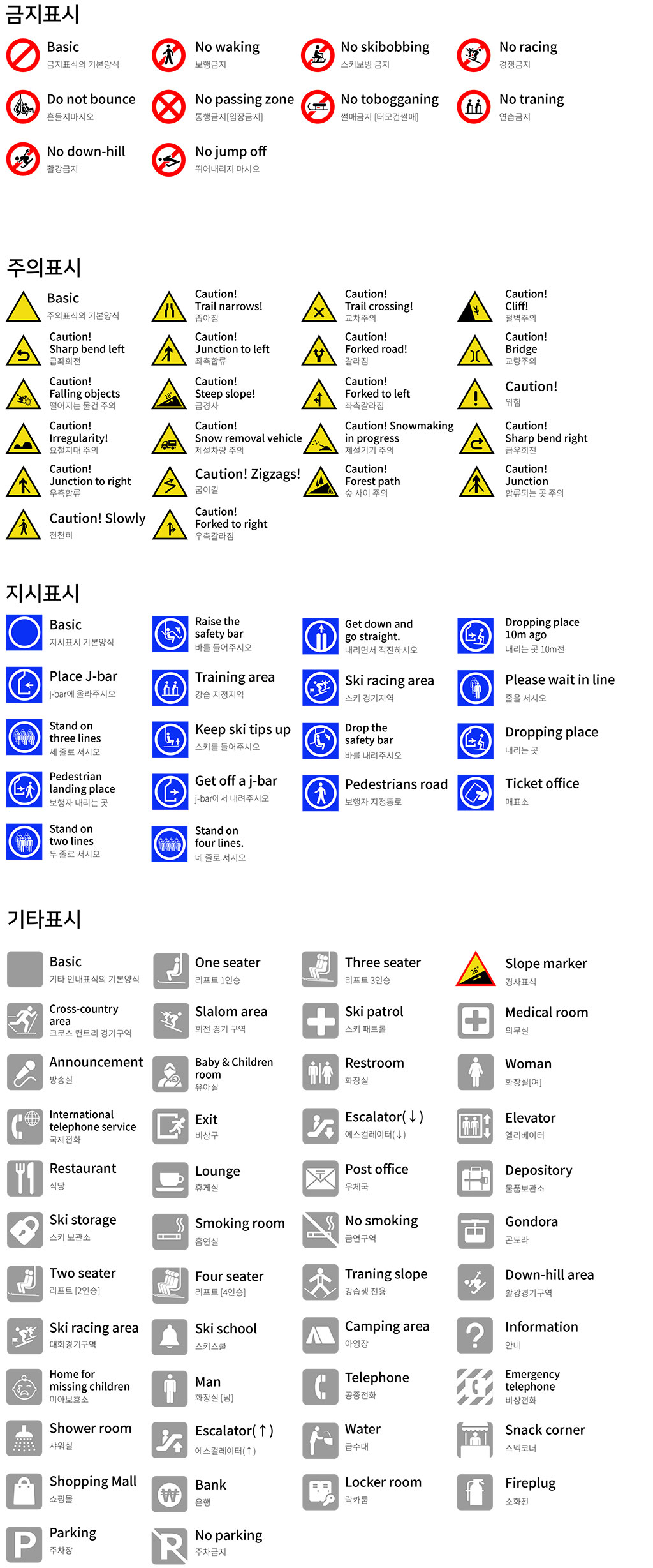 - 스키어는 스키장에 부착되어 있는 각종 신호나 표식을 준수해야 된다.